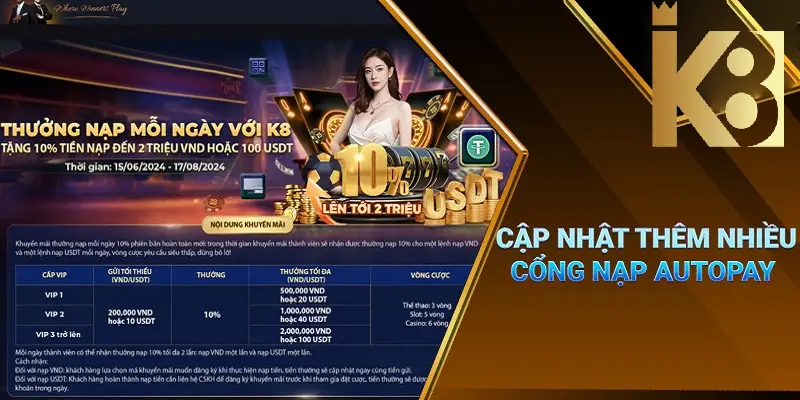 - Thưởng nạp lại K8BET hàng ngày, hàng tuần.